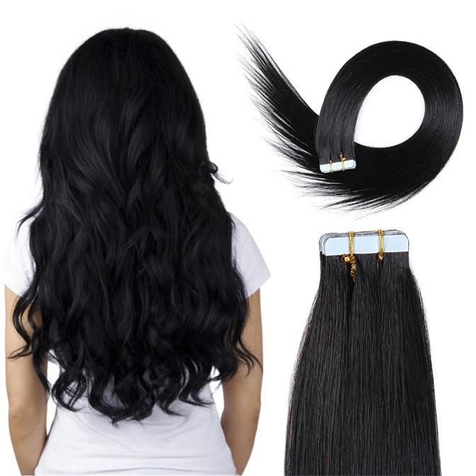 Lwwigs Luxury Tape Ins Hair Extensions Natural Black 100% Vrgin Human Hair Straight Seamless Skin Weft 20pcs/Pack/50gram quantity